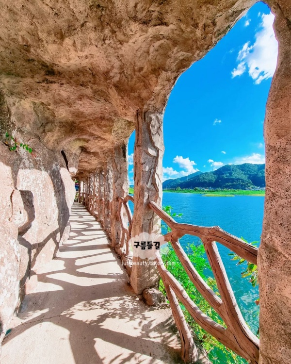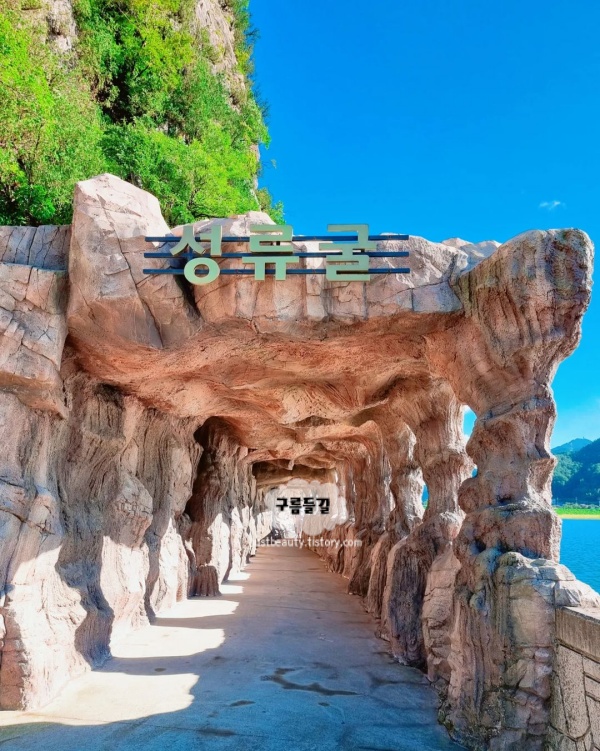 2억 5천만 년 전 생성된 석회암 동굴로 총 870m 규모에 270m 구간이 일반 개방되어 있다. 신라 진흥왕이 직접 다녀갔다는 명문이 8광장 암벽에서 발견됐고, 임진왜란 때 주민 500여 명이 피신했다는 슬픈 기억도 함께 품고 있는 곳이다. 동굴 입구로 향하는 터널 길이 가우디 건축물 같다는 말이 나올 만큼 몽환적이고, 내부 온도는 사계절 15~17도로 유지돼 여름엔 천연 에어컨, 겨울엔 온기가 된다.