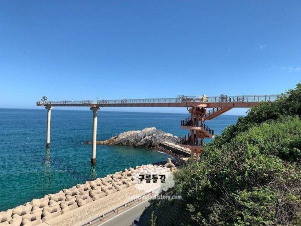 울진 여행의 첫 장을 여는 곳이 있다면 단연 후포항 뒤편에 자리한 등기산 스카이워크다. 높이 20m, 길이 135m 해상 교량 가운데 57m 구간이 강화유리 바닥으로 이루어져 있어, 발을 내딛는 순간 발아래로 파도가 그대로 보인다. 아찔하다는 걸 알면서도 발을 뗄 수 없는 묘한 흡인력이 있는 장소다.