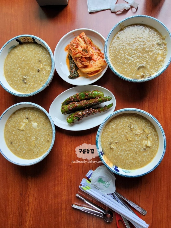 좌식 공간이라 아이와 앉기 편하고, 포장도 가능해 숙소에서 먹는 것도 방법이다. 아침 8시에 문을 여는 덕분에 등기산 스카이워크 관람 전 해장 겸 아침 식사로도 잘 맞는다. 메뉴는 전복죽 단 하나, 1인분 14,000원이다.