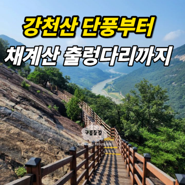 비녀를 꽂은 여인의 형상을 닮았다고 해서 이름 붙여진 채계산에는 국내 최장 270m를 자랑하는 무주탑 현수교가 걸려 있어요. 주차장에서 가파른 나무 데크 계단 540여 개를 약 15분 정도 올라가야 하는데, 숨이 조금 가빠올 때쯤 마주하는 출렁다리의 모습은 아찔하면서도 시원한 해방감을 선사하더라고요.