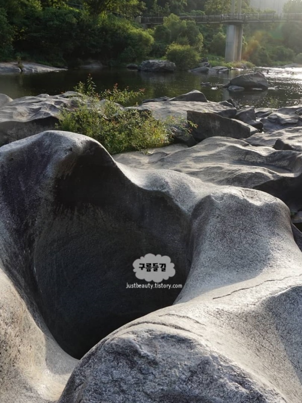 섬진강 상류에 위치한 장군목 유원지는 수만 년의 세월 동안 강물이 바위를 깎아 만든 기묘한 풍경이 펼쳐지는 신비로운 계곡이에요. 그중에서도 가운데 구멍이 뻥 뚫린 '요강바위'는 성인 여러 명이 들어갈 수 있을 만큼 거대해서 자연의 신비로움에 절로 경외심이 들더라고요. 맑은 강물이 바위 사이사이를 흐르는 소리는 그 어떤 음악보다 마음을 편안하게 해 준답니다.