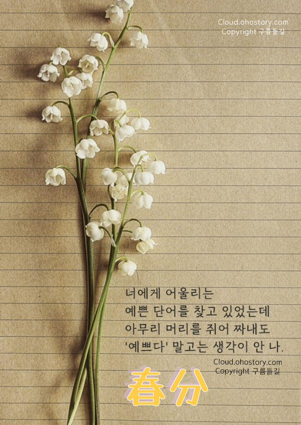 - 4 오늘 춘분이래요. 세상은 어수선하지만 봄은 왔으니까요. 조금은 나아지겠죠.