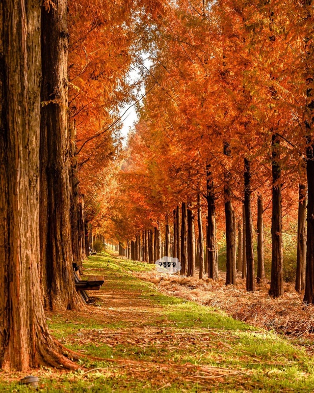 유료화 되어서 입장료 3천원이 있습니다. 대신 가는 길이 정비되고 더 좋아졌습니다. 주황빛으로 물들어가는 메타세콰이어길을 낭만적으로 걸어볼 수 있습니다.