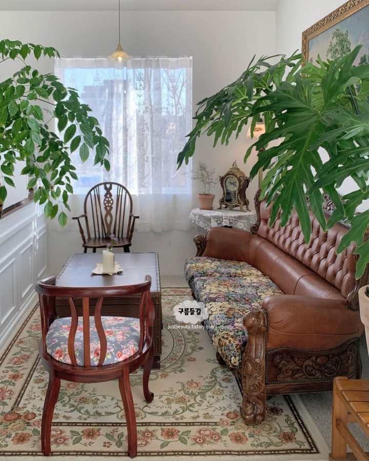 2층 왼쪽 끝창에는 이쁜 냥이가 반갑게 맞이해주고 내부 또한 빈티지하고 앤틱한 무드감성으로 가득가득 채워져 있어서 모든 곳이 포토존이었습니다. 초록집이 포토스팟이고 바로 앞 교회건물이 카페입니다.