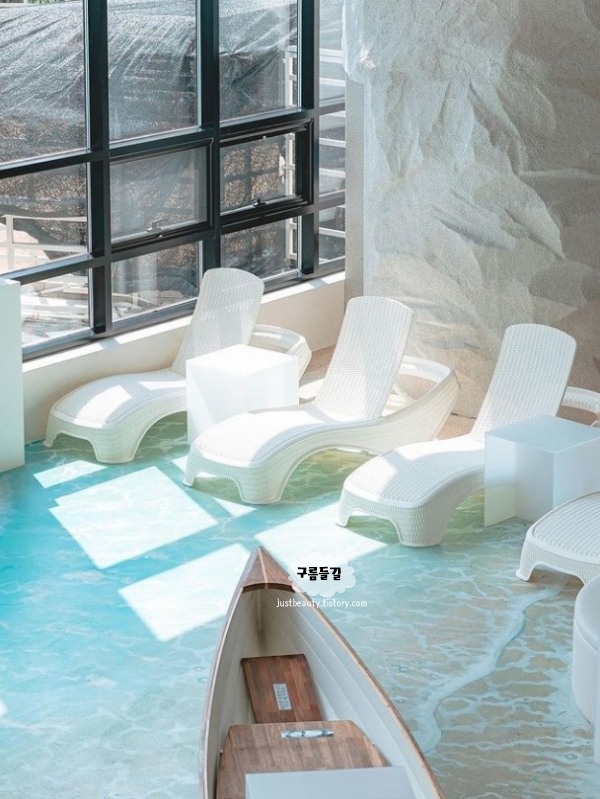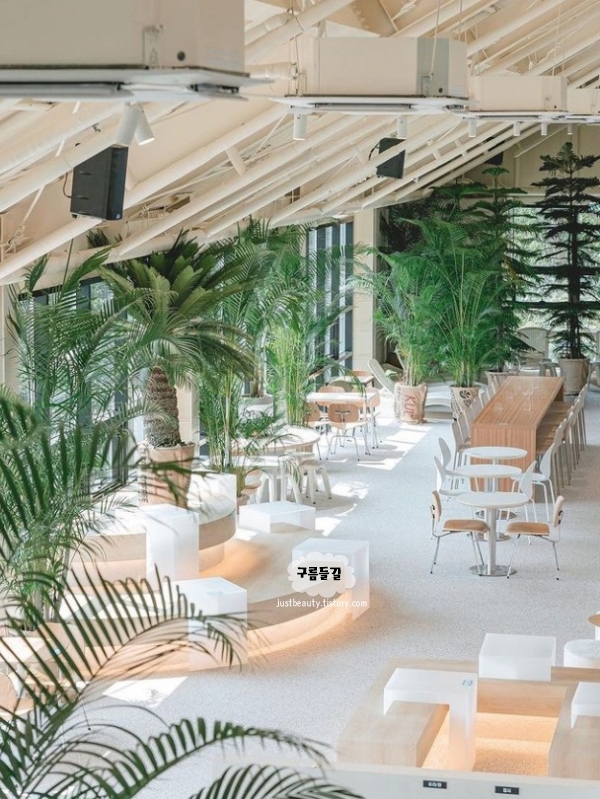 대형스크린 속 바닷가에 풍덩 빠진 듯한 카페로 요즘 경기도 김포 가볼만한곳 베스트 10 최고인 수산공원이 있습니다. 시원한 느낌 낭낭하고 김포에서 엄청 핫한 대형카페라서 방문하면 후회는 없을 것 같습니다. 웅장한 외부에 일단 입이 터억하고 벌어지게 되고 전체적인 하얀색 배경과 탁 트인 통유리창, 초록초록한 잔디들과 동물들까지 있어서 카페인지 식물원인지, 농장인지 헷갈릴 정도입니다.
