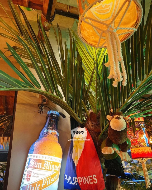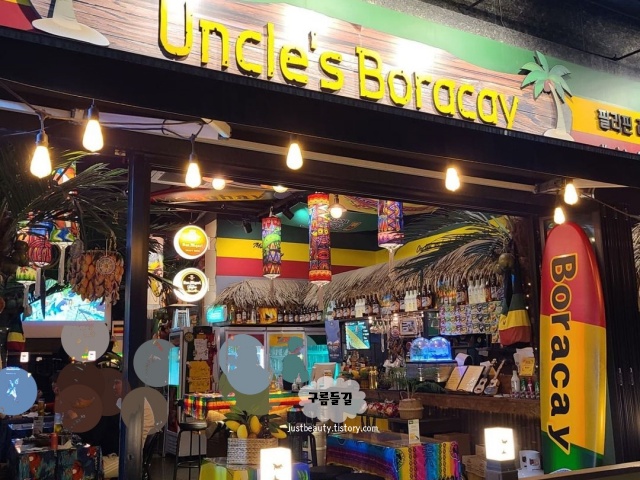웨이팅을 할 경우에는 여행 온 것 같은 기분이 들게하는 '비행기 티켓'을 준다는 점이 인상적이었고 티켓 뒷면에는 필리핀 병맥주 혹은 음료 1병을 주는 프리드링크 패스권이 있어서 더 놀라웠던 장소입니다. 진짜 신박한 점은 엉클스 보라카이의 모든 결제는 '필리핀 페소'로도 가능하고, 여행 다녀오면 동전이나 그 나라 돈이 좀 남는데 예전에 남은 필리핀 페소를 한국에서 사용할 수 있어 너무 즐거웠던 장소입니다.