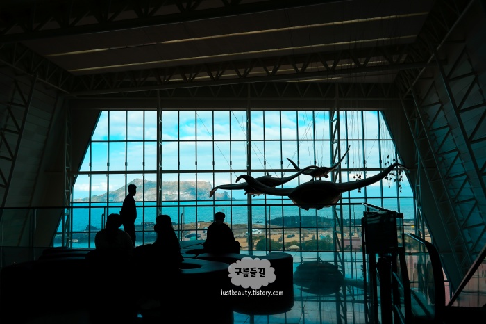 주차장은 넉넉하고 주차 도와주시는 분은 있을 때도 있고 안 계실 때도 있고 그렇더라구요. 아무튼 올 때마다 주차공간이 부족해서 짜증났던 적은 한 번도 없었습니다. 또한 아쿠아플라넷 안으로 들어오면 보이는 성산일출봉 이 풍경은 언제나 아름답습니다. 참 좋은 위치에 자리를 잡았죠.