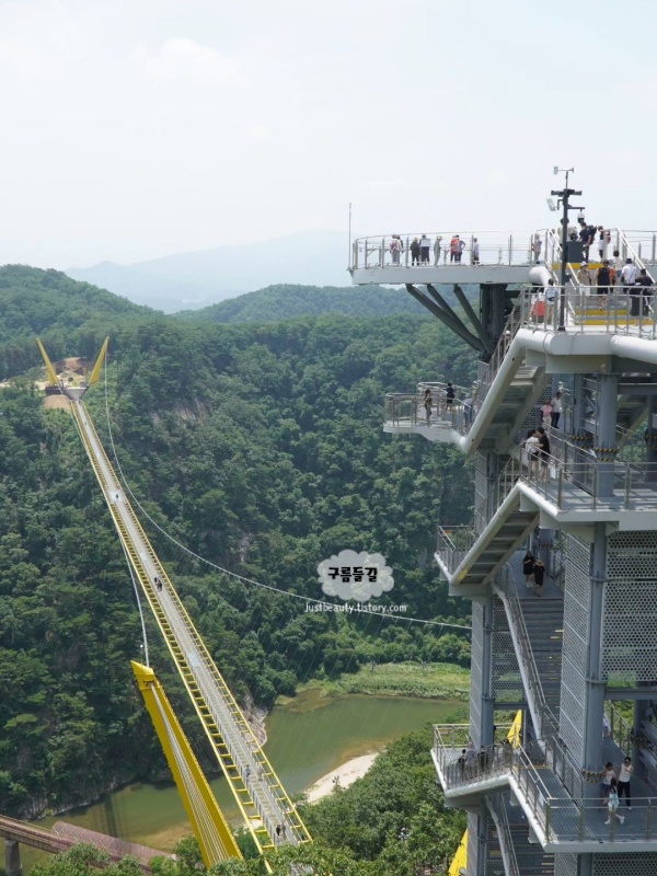전체 이용 코스는 데크계단 – 출렁다리/하늘 바람길 - 하늘정원 – 데크산책로 – 소금잔도 -스카이타워 -울렁다리로 제 경우 총 소요시간은 2시간 조금 넘었습니다. 주차장에서 매표소까지 1.3km 가 떨어져 있어 왕복 30분 추가하면 전체 소요시간은 2시간30분 예상하면 되고 사진촬영이나 휴식시간은 추가 하시면 됩니다.