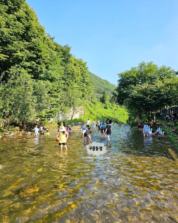 계곡물은 깨끗하고 얕아서 누구나 안전하게 즐길 수 있으며, 주변의 울창한 소나무 숲이 그늘을 만들어 자연 속에서 시원함을 느낄 수 있습니다. 또한 상류로 올라가면 자연 그대로의 풍경을 감상할 수 있어 한적한 시간을 보내기 좋습니다.