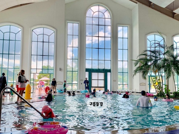 원주 아기랑 가볼만한곳 오크밸리 힐스 빌리지 수영장은 실내와 실외 수영장이 있어 다양한 수영 활동을 할 수 있으며, 어린이를 위한 얕은 풀과 미끄럼틀도 마련되어 있었습니다.