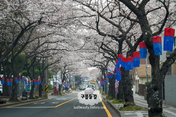 제주 최고의 벚꽃 명소로 손꼽히는 곳이에요. 약 4km에 달하는 도로 양옆으로 벚나무가 터널을 이루고 있어요. 3월 말이면 벚꽃이 만개해서 도로 위로 흩날리는 벚꽃잎이 정말 환상적이에요. 차를 타고 천천히 지나가도 좋고, 길가에 주차하고 걸어도 좋아요.